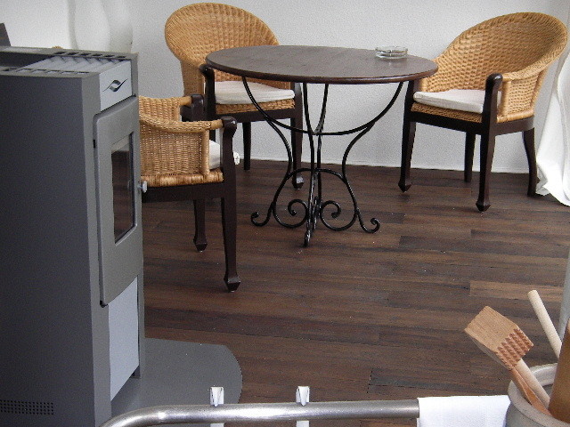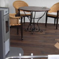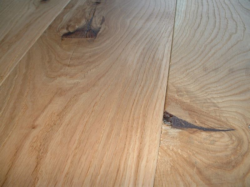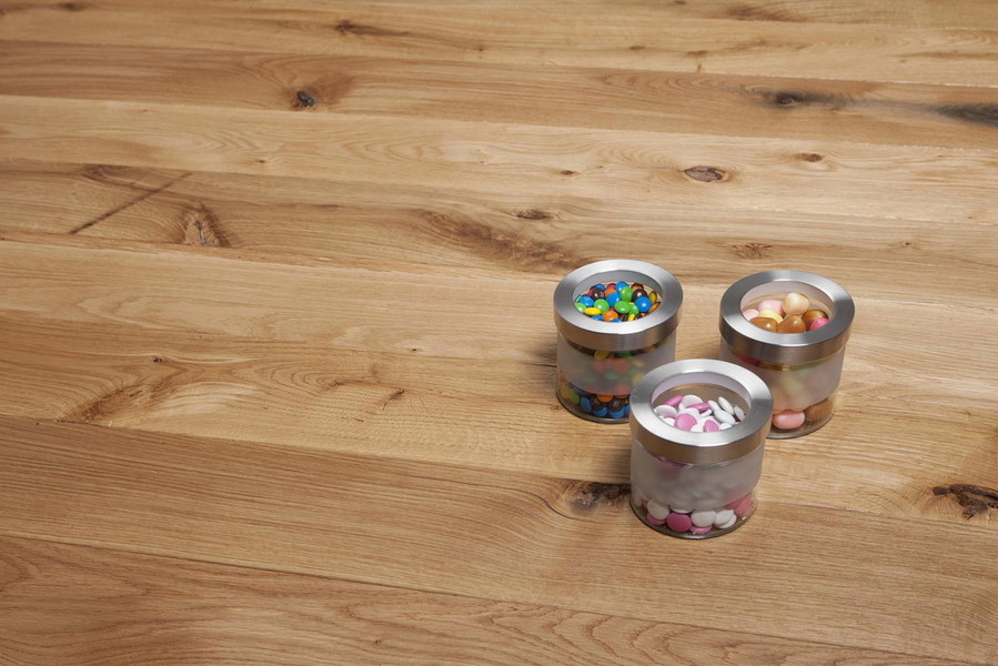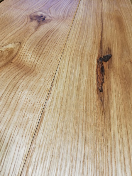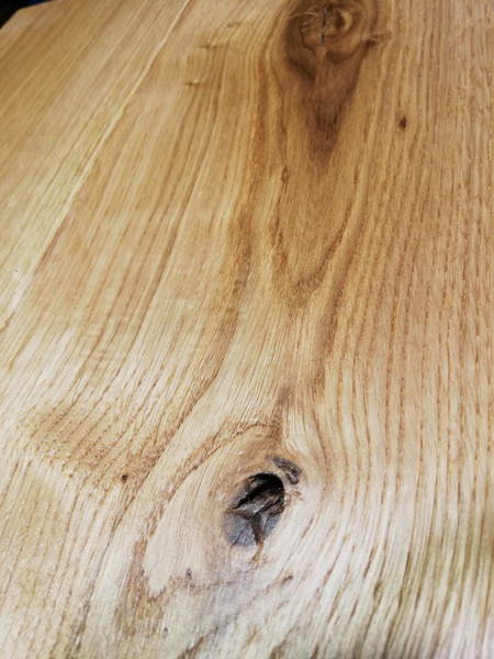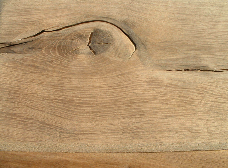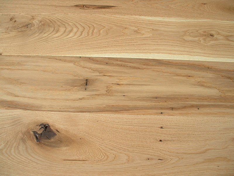 Rustik: Teilweise markante Farbunterschiede, Astanteile von ca. 0 - 80 mm Durchmesser ( an der Schmalseite gemessen ) vorkommend. Astanteile sind gefüllt und geschliffen. Splintanteile im Randbereich und Flächig sind erlaubt.