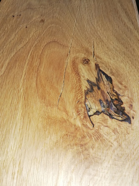 Natur: Dielen mit geringen Farbvarianten, Astanteile von ca. 0 - 35 mm Durchmesser ( an der Schmalseite gemessen ) vorkommend. Splintanteile im Randbereich möglich.